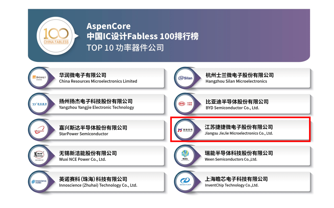 由全球歷史最久的科技界線(xiàn)上線(xiàn)下多媒體 Aspencore 分析師團隊根據量化數學(xué)模型、企業(yè)公開(kāi)信息、廠(chǎng)商調查問(wèn)卷,以及一手訪(fǎng)談資料,精心篩選出中國IC設計行業(yè)100家綜合實(shí)力和增長(cháng)潛力最強的公司。這100家公司分為10大類(lèi)別,每個(gè)類(lèi)別評選出Top 10。捷捷微電 榮登“2023 中國IC設計 Fabless 100 排行榜之 Top 10 功率器件公司”!